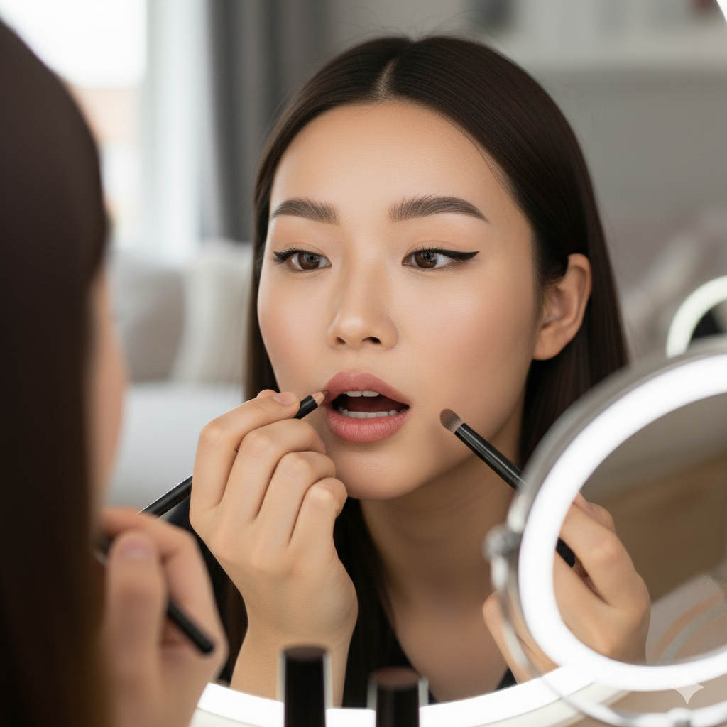 * 얇은 쪽 입술: 비대칭으로 더 얇아 보이는 쪽의 입술 라인을 1~2mm 정도 과감하게 확장해서 그려 반대쪽과 두께를 맞춰주세요. 이때 본인 입술색과 가장 유사한 MLBB 컬러의 립 라이너를 사용해야 '나 원래 입술 도톰해'처럼 자연스럽습니다.