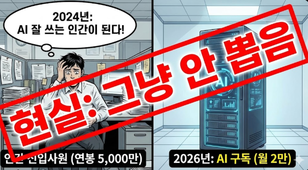 불과 2년 전인 2024년, 우리는 이 말을 믿고 싶어 했습니다. 내가 AI라는 도구만 잘 다루면 경쟁력이 생길 것이라 생각했죠. 하지만 2026년이 된 지금, 우리가 마주한 현실은 훨씬 단순하고 잔인합니다.
